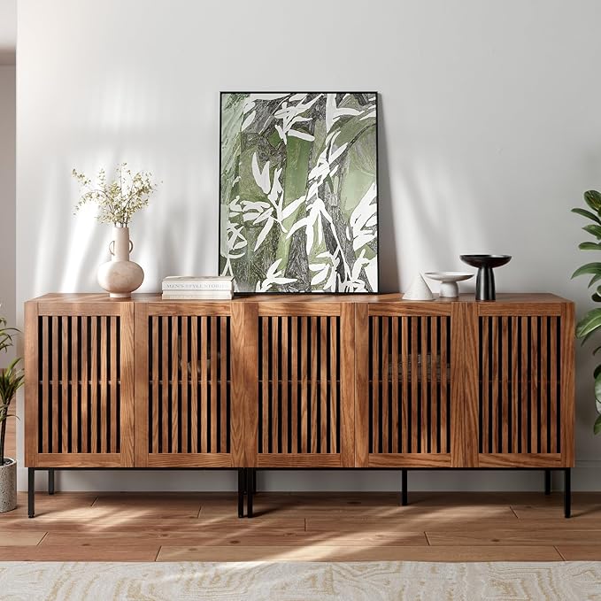 - Unique Design: This Farmhouse TV stand lies in its unique design that seamlessly merges rural charm with modern elegance.The grating door design adds a touch of rustic style, while also allowing for easy access to the storage compartments.