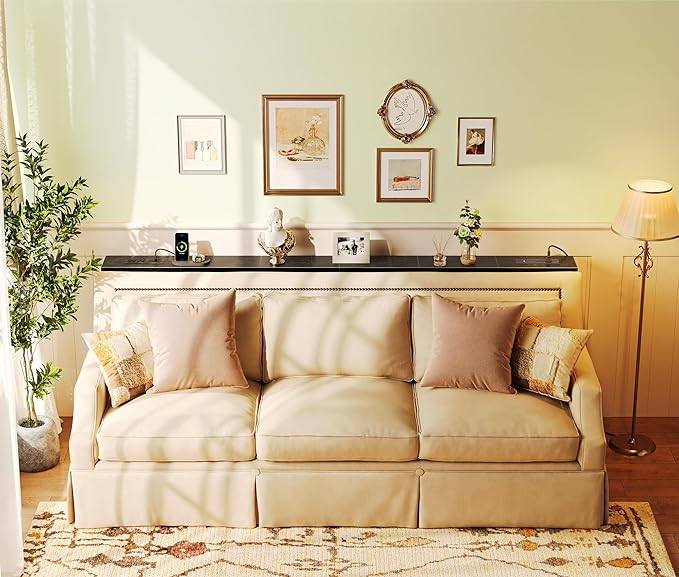 - 【Flexible Charging Stations】Whether you’re lounging solo or hosting a gathering, this thin console table offers multiple charging options right behind your sofa. With 2 AC outlets, 1 USB port, and 1 Type-C port, you’ll always have easy access to power. Plus, when you combine 2 tables behind couch, you can position the charging station on the side or in the middle, making it even more convenient