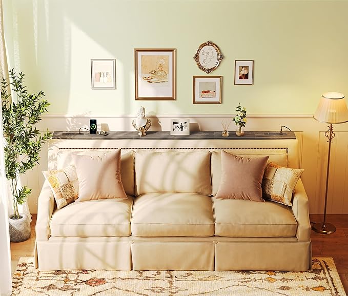 - 【Flexible Charging Stations】Whether you’re lounging solo or hosting a gathering, this thin console table offers multiple charging options right behind your sofa. With 2 AC outlets, 1 USB port, and 1 Type-C port, you’ll always have easy access to power. Plus, when you combine 2 tables behind couch, you can position the charging station on the side or in the middle, making it even more convenient