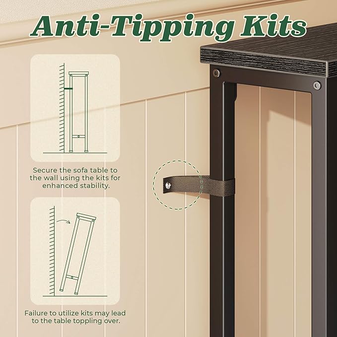 - 【Quick Assembly and Stability】With easy-to-follow instructions, simple construction, and included tools, you can have this sofa table with outlet assembled in just 15 minutes. For added stability, attach it to the wall, and use the adjustable feet to keep it level on uneven floors