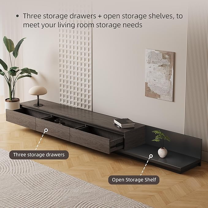 - Ample Storage Space: The TV stand With three spacious drawers, provides ample storage for all your multimedia items such as remote controls, films, CD players, and magazines.
