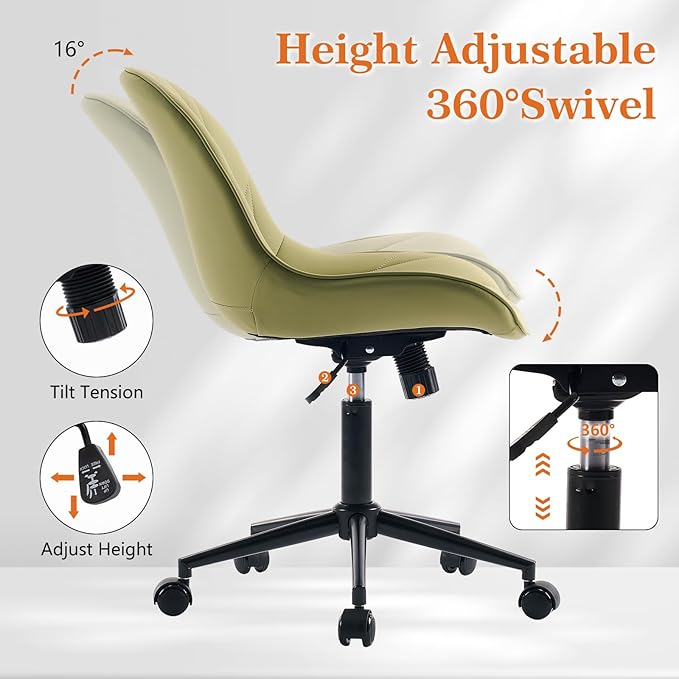 Rowill Modern Office Chair - Ergonomic Swivel Leather Desk Chair with Curved Backrest, Height Adjustable Rolling with Wheels, Perfect for Study Room & Office, Avocado Green