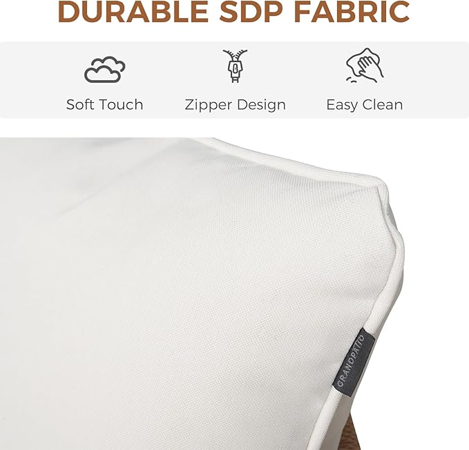 - THICKENED CUSHION: 230 grams of light-beige SDP fabric. Soft and skin-friendly, fade-resistant, durable and adaptable to many kinds of outdoor weather. The dining chairs with 3.15-inch cushions provide an upgraded level of comfort.