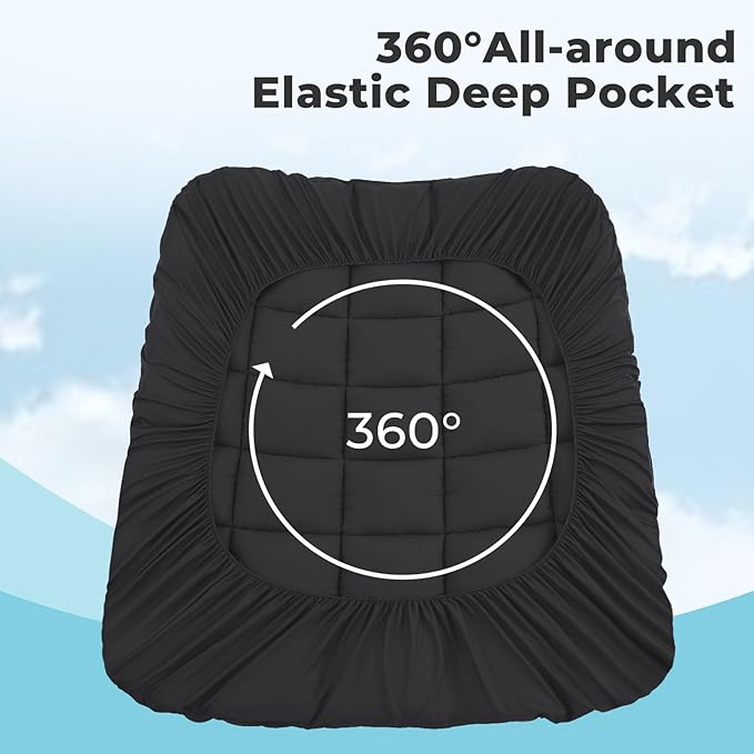 - Snug Fit with Deep Pocket Skirt: The 360° elastic deep-pocket skirt hugs your queen size mattress like a fitted sheet, accommodating beds up to 21 inches thick. Whether you're upgrading an old mattress or enhancing a new one, this mattress topper queen size bed stays securely in place.