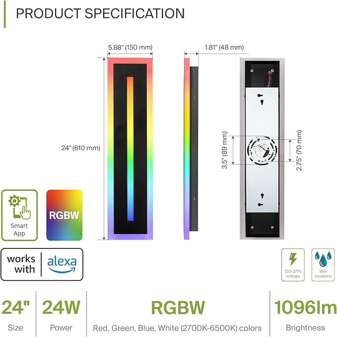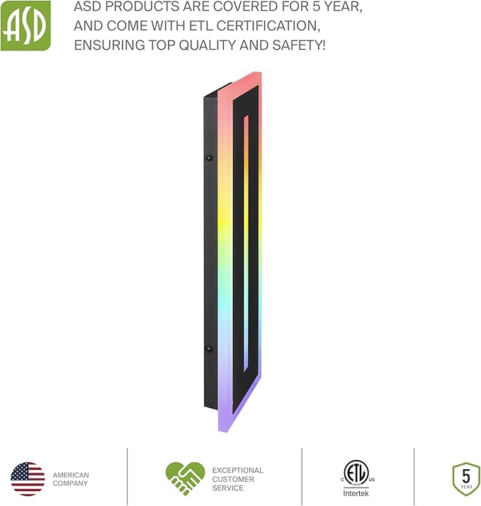 ASD LED 24" Long Wall Mount Light Fixture, Outdoor & Indoor Linear Sconce | RGBW, Smart, Waterproof, Anti-Rust, ETL Listed | 24W 1100LM 2700-6500K 100-277V | Exterior Porch Lighting | Black