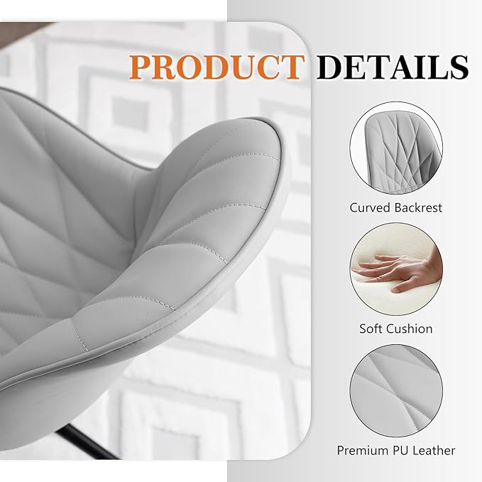 Rowill Modern Office Chair - Ergonomic Swivel Leather Desk Chair with Curved Backrest, Height Adjustable Rolling with Wheels, Perfect for Study Room & Office, Gray
