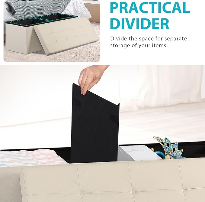 SUPER DEAL Storage Ottoman Bench, 43 Inches Folding Ottoman Foot Rest, Storage Chest with Padded Seat, End of Bed Bench for Living Room Bedroom Entryway, Load 660 lbs, 15" x 43" x 15" Beige