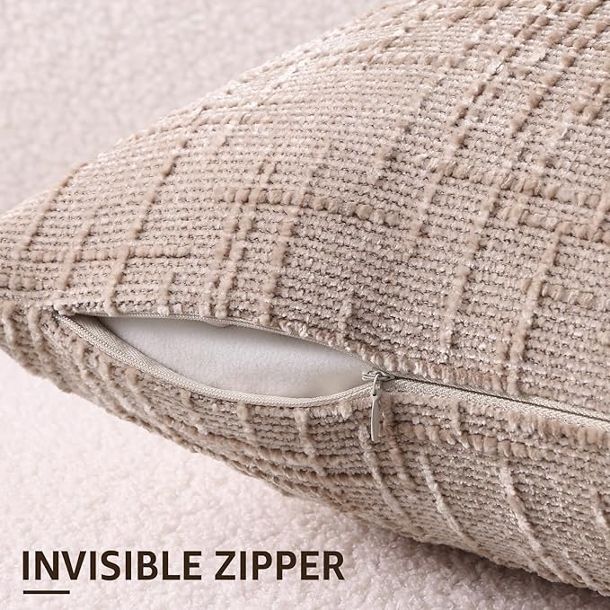 - Care Instruction: Including 16 x 16 Inch/ 40X40 cm pack of 2 oatmeal natural beige pillow covers Without Inserts. The chenille pillow covers are easy to care for. Machine washable in gentle mode. Tumble Dry Low. Do Not Iron