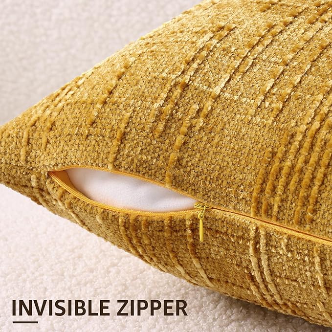 - Care Instruction: Including 12 x 20 Inch/ 30X50 cm pack of 2 mustard yellow pillow covers Without Inserts. The chenille pillow covers are easy to care for. Machine washable in gentle mode. Tumble Dry Low. Do Not Iron