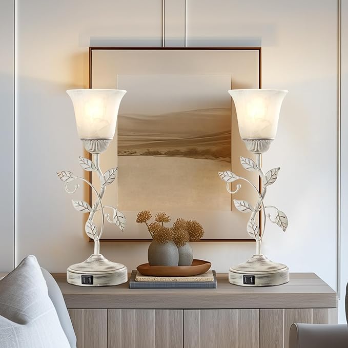 - Vintage Appearance Design: This leaf table lamp is in vintage washed white color, showing a retro and elegant style. The leaf decorative details on the metal stand are exquisite and complement the white glass shade, creating a fresh and natural atmosphere. Whether placed in the living room, bedroom, study or office, it can be the highlight of your home decor