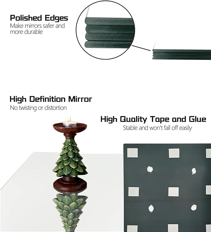 - Safe and Unbreakable: Wall mounted mirror tiles glass edges are ground smooth, finished with a shiny or glossy polish, you don't have to worry about your hands getting injured when installing. Glass mirror tiles crafted from shatterproof materials making it perfect for homes with children or pets.