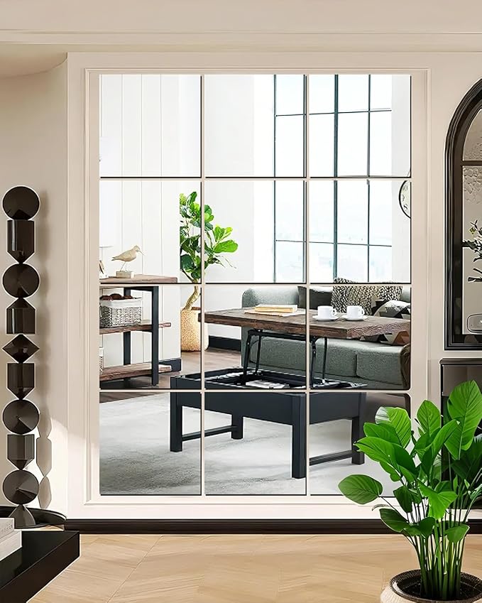 12" x 12" Glass Wall Mirror Tiles for Wall, Frameless Full Length Mirrors Wall Mounted for Home Gym Mirror Yoga Bedroom Dancing Studio Dressing Room (12PCS)