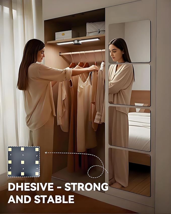 - 🔅[EASY TO COMPOSE - FULL BODY MIRROR]: Frameless mirror is made of upgraded double-sided foam tape, safe and reliable!It can be easily installed on smooth walls, latex painted walls, shallow hole tiled walls furniture or wooden doors, but not applicable to wallpaper, blistering walls, dusty walls, wet walls, uneven walls. Cannot be moved freely after fixing