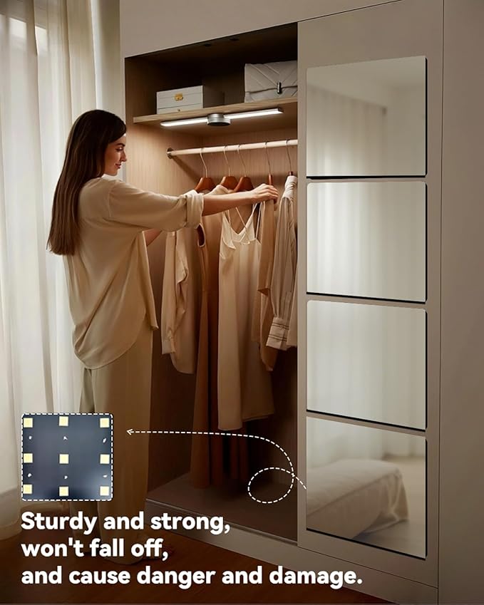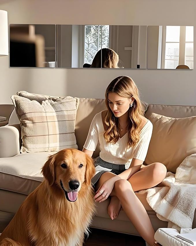 - 🔅[SIZE-PLATFORM MIRRORS]: 4 frameless real glass mirrors, each mirror tile measures 12 x 12 inches. Advanced polishing technology makes the edges safe and delicate.