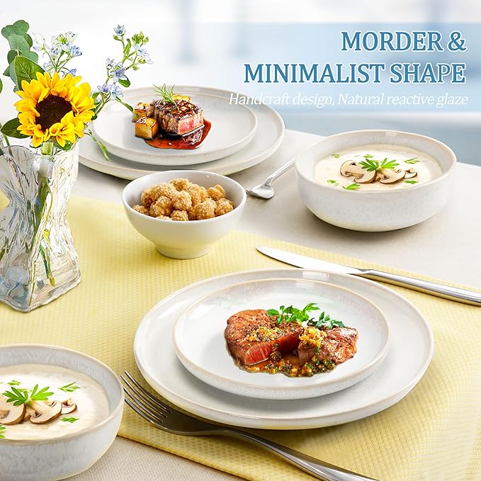 Plates and Bowls Sets, Ceramic Dinnerware Sets, 12 Pieces Modern Stoneware Dinnerware Set for 4, Reactive Glaze Dinnerware Set for Home Kitchen, Scratch Resistant, Microwave and Dishwasher