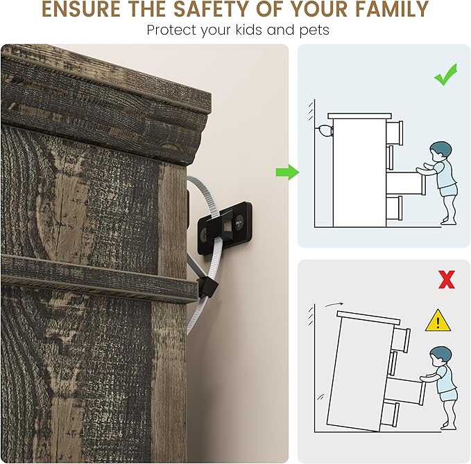 - 【Built to Last】Crafted from high-quality engineered wood, this dresser is designed for durability. The reinforced base provides exceptional stability, supporting over 500 pounds. The scratch- and water-resistant laminate surface ensures easy cleaning and long-lasting beauty. Anti-tip hardware is included for added safety, making it a reliable choice for households with children or pets.