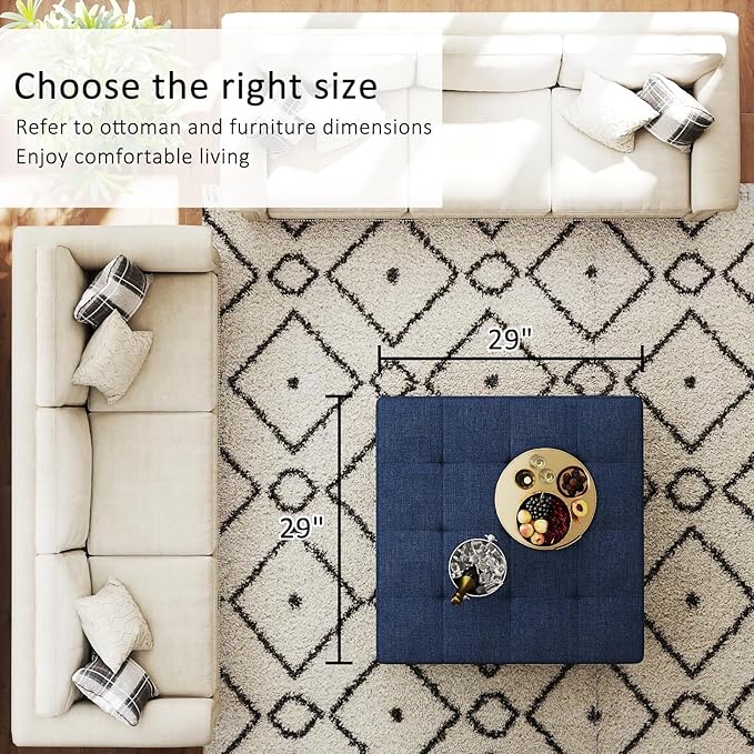 - Strong Construction: The tufted ottoman is made of high end natural rubber wood, sturdy structure without shaking, easy to bear 400 pounds. With large storage space for books, snacks, cups and other items, make your home more tidy