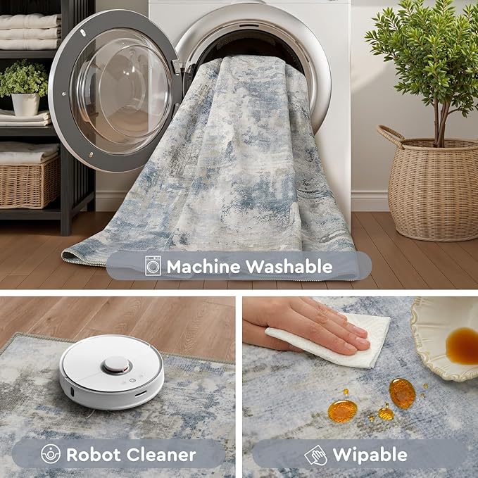 - Cozy and Soft Rug: Walking or sitting on washable rugs 9x12 offers a wonderful sensory experience, adding warmth and comfort to your living spaces. Ideal for both home and office settings, blue and brown rug effectively insulates against cold floors, making room rug especially valuable during the colder months.