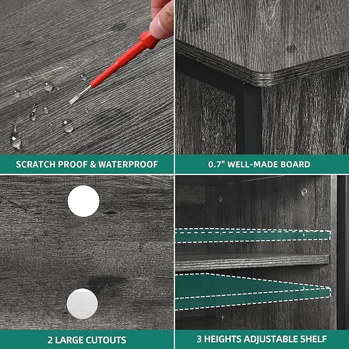 YITAHOME Farmhouse TV Stand with Power Outlet, Corner TV Stand for 55/50 Inch TV, Entertainment Center with Storage, TV Console Cabinet for Living Room, Grey Oak