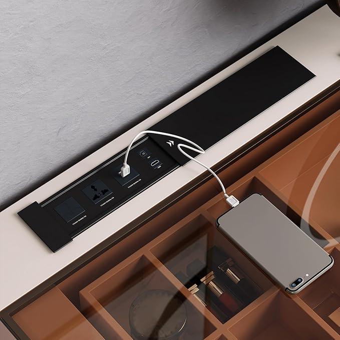 - MULTI-FUNCTIONAL DESIGN: Features a dressing table with integrated power - includes 2 power outlets, 2 USB ports, and cable management holes for convenient device charging while getting ready