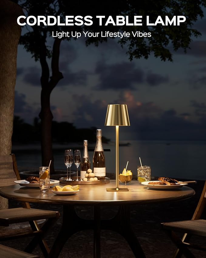 - Long-Lasting Battery and Emergency Ready: Using an embedded 5000mAh battery system, this cordless rechargeable table lamp delivers 10 to 24 hours of light and charge 4 to 5h. A reliable battery operated light for power outages,camping,or outdoor use. No cords,no fuss uninterrupted illumination for dinners,parties,or emergencies. The ultimate outdoor lamp and shower safe lighting solution.
