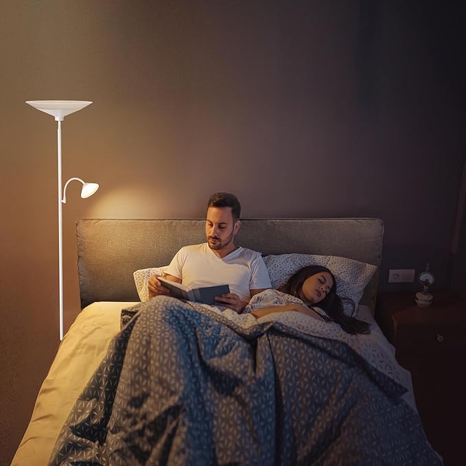 - 【Dual-Zone Smart Lighting】This upgraded torchiere led floor lamp, adjust brightness (10%-100%) and color temperature (3000K-6500K), the warm light creates cozy ambiance for movie nights or relaxation, the natural light provides flicker-free illumination for reading/working.