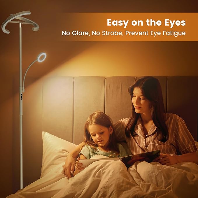 - 【Upgraded 2-in-1 & Individual Control】SIBRILLE Upgraded mother-daughter led floor lamp, combines a main light and a reading light; each light can be individually controled, you can turn on 1 or 2 according to your mood; with its modern, minimalist and unique look, ideal for your living room, bedroom, couch, office or home corner.