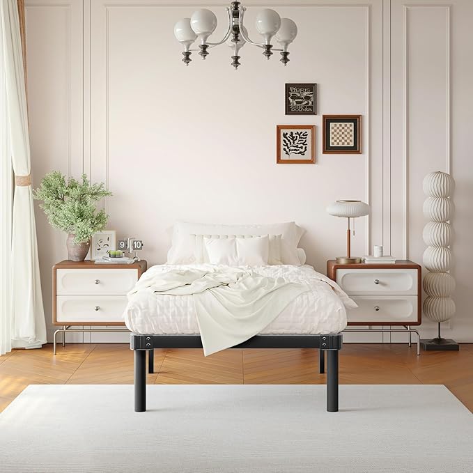 - 【Minimalist & Modern Design】This 16-inch metal platform bed frame features a sleek, minimalist design with clean lines, making it a perfect fit for modern, contemporary, or traditional bedroom decor. Its polished edges and timeless black finish add a touch of elegance to any space.