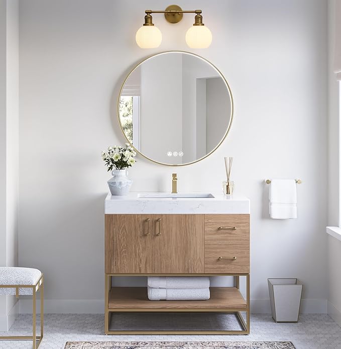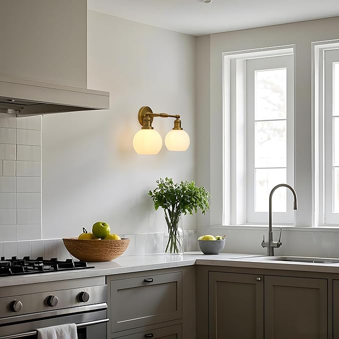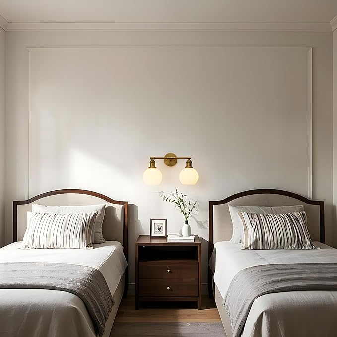 Vintage 2-Lights Wall Sconce with Milk White Glass Globe Shade, Hardwired Indoor Wall Light Fixture for Bathroom Vanity Living Room Bedroom