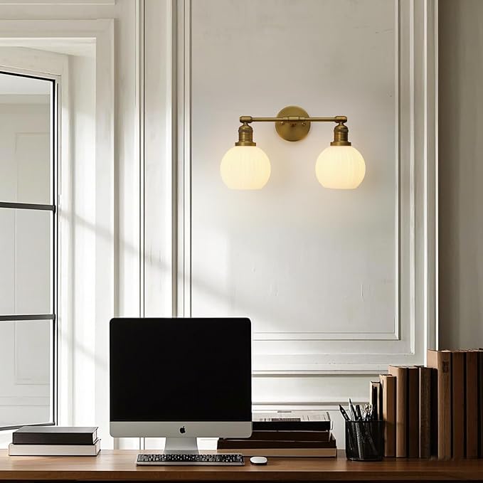 - Industrial Vintage Design: Antique metal lampholder with two white striped glass ball shades, premium material, and handmade craft, which makes each one truly special. The wall sconce fixture will be a perfect art decoration for your modern or retro space. It generates a warm and welcoming ambiance, it is an excellent option for areas such as your bedroom, hallway, living room, entryway, foyer, entry, porch, and even kitchen