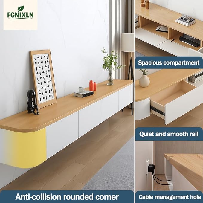 - 【Space-Saving Wall-Mounted Structure】By mounting the TV shelf on the wall, this stand helps free up floor space, giving your room a clean, organized, and spacious feel. It's perfect for small spaces or minimalist interiors.
