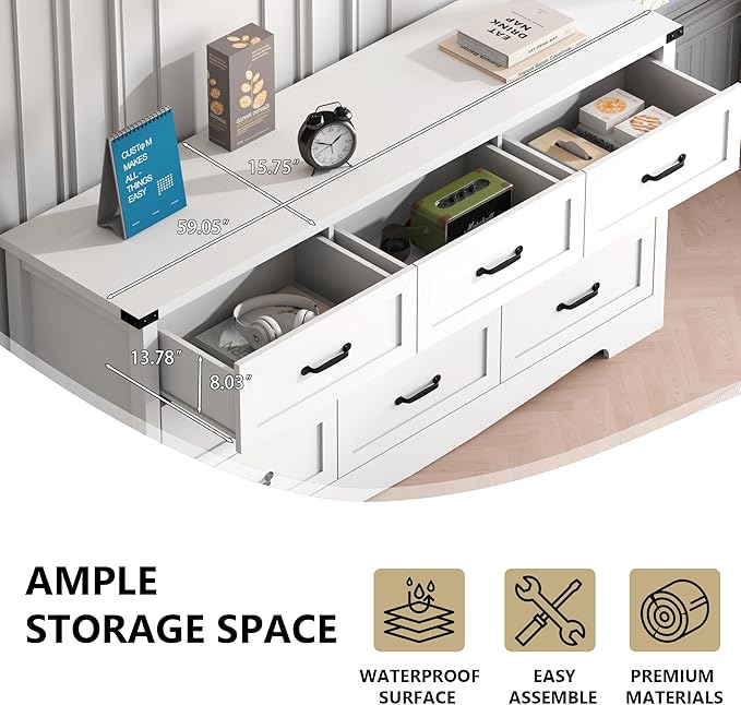 - 【Easy Assembly and Secure Packaging】 Arriving well-packaged with Styrofoam and wooden boards to prevent damage, this wide dresser is easy to assemble with labeled parts and step-by-step instructions. A versatile addition to your bedroom dressers, storage drawers, or drawers for bedroom, combining practicality and style.