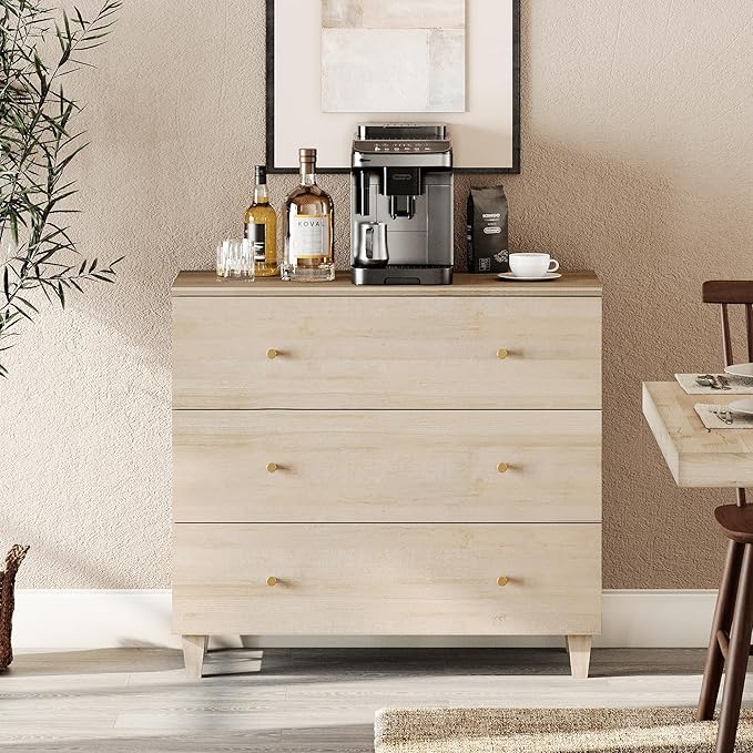 WAMPAT TV Stand Dresser for 32+ Inches TVs, Wood Media Console Table with 3 Drawers, Modern Highboy Entertainment Center with Storage for Living Room Bedroom, Natural Oak