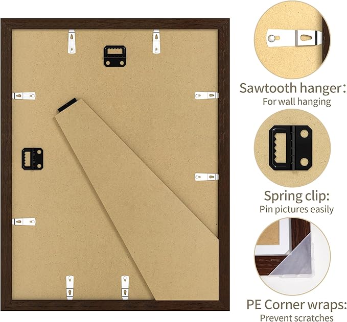 - [Versatile Design]This 11x14 natural oak wood frame has a fine overall cutting process,seamless fit,and a spring-type design on the back,allowing you to install it easily.At the same time,they can be hung horizontally or vertically,ready to decorate your walls elegantly and stylishly.