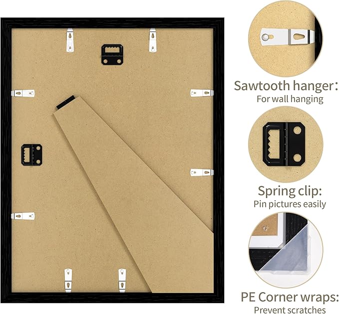 - [Versatile Design]This 11x14 natural oak wood frame has a fine overall cutting process,seamless fit,and a spring-type design on the back,allowing you to install it easily.At the same time,they can be hung horizontally or vertically,ready to decorate your walls elegantly and stylishly.