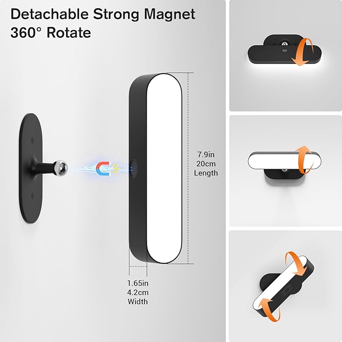 - Magnetic&360° Rotatable: wall light fixtures feature 360° swivel design with bulit-in magnet and round iron-ball base. Easy to adjust light angle and range for better experience, and detach main body from the base for handheld, portable and outdoor use