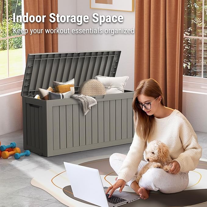 - 【All-in-One Outdoor Storage】- This versatile storage box is designed to meet all your organizational needs. Use it to store patio furniture cushions, pool towels, gardening tools, or even porch deliveries. Perfect for keeping your outdoor area tidy, while the sturdy lid doubles as a functional side table for drinks or decor. Whether you're relaxing by the pool, hosting a backyard gathering, or organizing your garage, this box is your ultimate storage companion