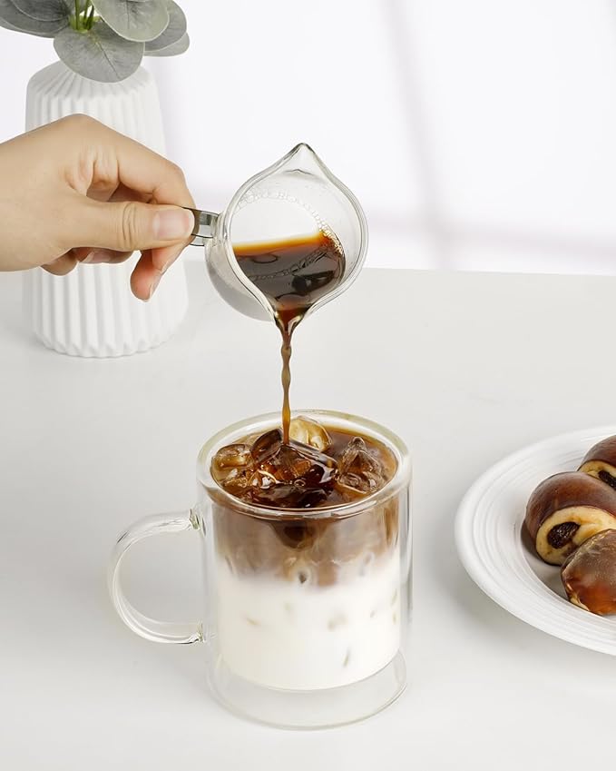 - ☕EASY TO HOLD - The coffee glasses are lightweight, the handles are a perfect size, and do not cause discomfort to hold. It is very easy to use for enjoying Latte, Cappuccino, Espresso, tea, beer, juice, milk, and other hot or cold beverages.