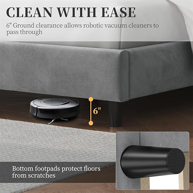 - Reasonable Under-bed Space: 6" under-bed space allows vacuum cleaning robots to pass through easily, making cleaning a breeze for you