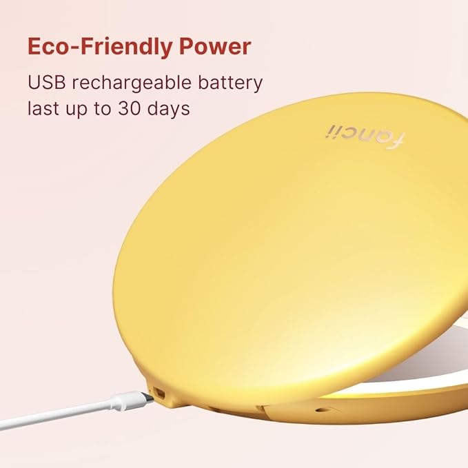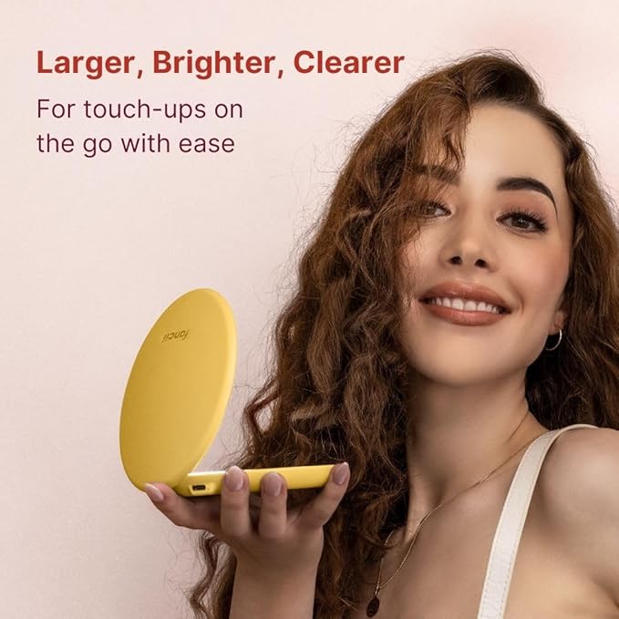 Fancii Taylor Travel Makeup Mirror with LED Light, Rechargeable, 10x /1x Magnifying, Tru-Glow Lighting System, XL Large 5” Wide | Compact Mirror for Purses (Marigold)