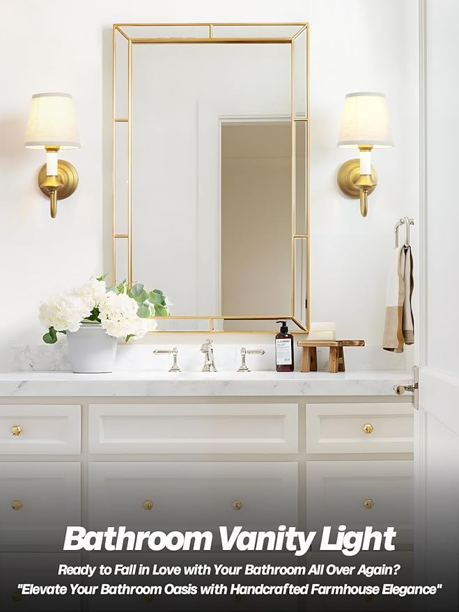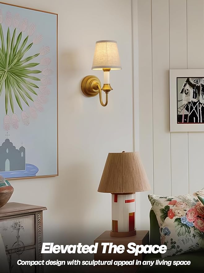 - Materials: Well manufactured with fabric and metal materials. Plating craft brass lampholder, hand made fabric shades and features a acrylic tube which makes the wall sconce more durable and anti-dust. The linen material resists dust and complements both modern and farmhouse decors