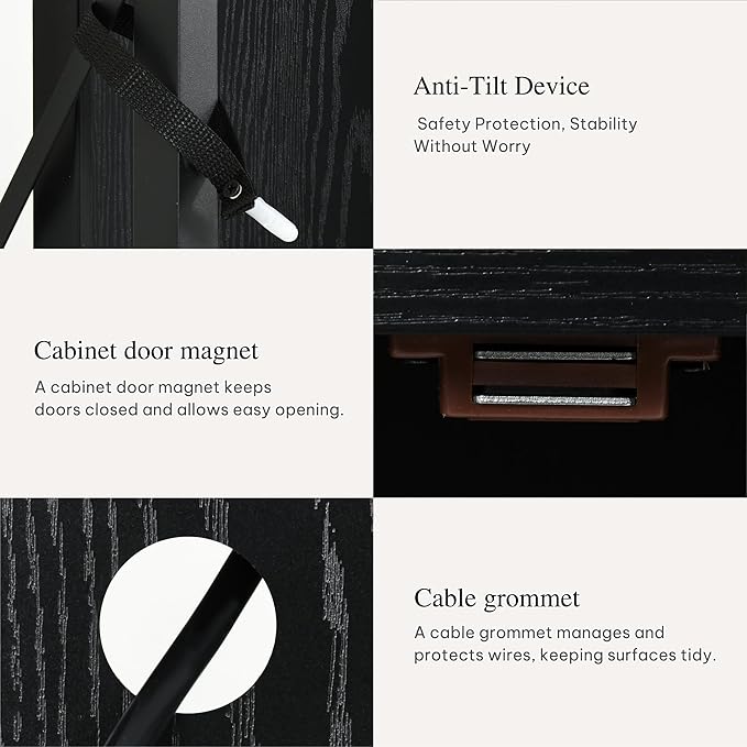 - Heavy Duty: Built with sturdy engineered wood and metal tubes, this TV stand for living room offers strong support for your growing collection of media gadgets. The included tip-resistant kit ensures it stays secure, ideal for homes with curious pets
