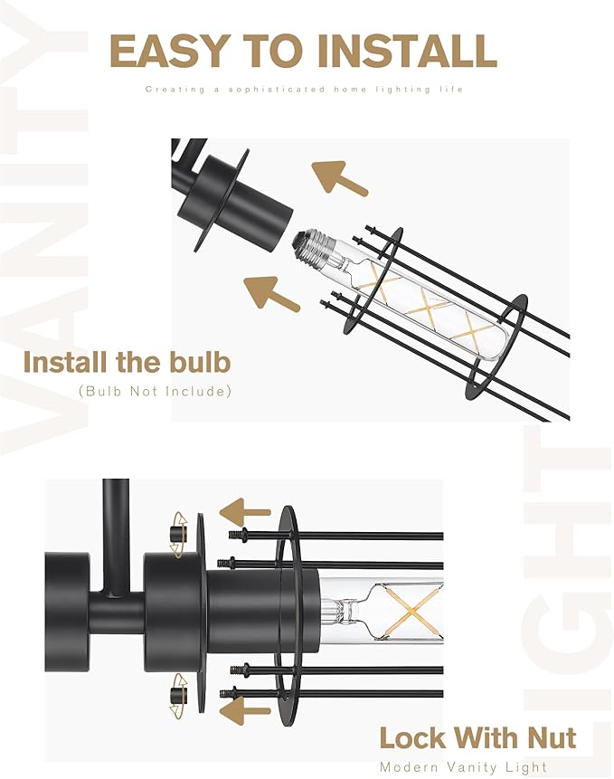 - [BULB REQUIREMENTS]This black sconces can be mounted vertically or horizontally to suit your space. It requires 2 x E26 base bulbs (60W max, not included) and is fully dimmable when used with compatible dimmable bulbs and a dimmer switch (not included).