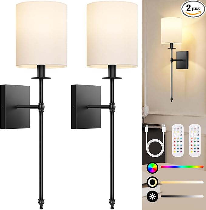 - 【Premium Quality & Versatile】Crafted from exquisite metal with elegant pre-assembled white cylinder-shaped fabric shades, our indoor wall light epitomizes durability and timeless style. Whether your décor leans towards modern or rustic farmhouse styles, it's ideal for living rooms, bedrooms, dressing areas, hallways, bathroom vanities, mirror cabinets, corridors, and entryways. Besides, they serve as night lights, vanity lights,RGB lights, and more, catering to a variety of lighting needs.
