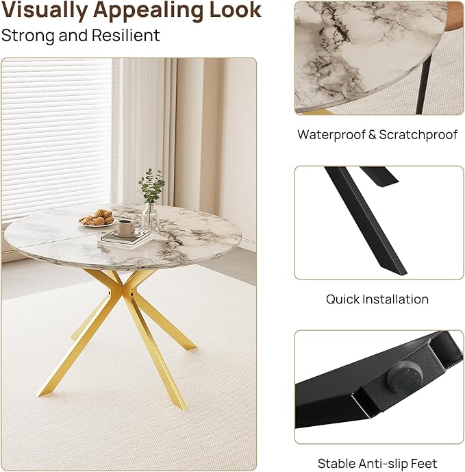 - Stylish Dining Set for 4: This modern round dining table set includes a 46.4" round table and 4 comfortable PU leather chairs, perfect for family meals, gatherings, or casual dining.