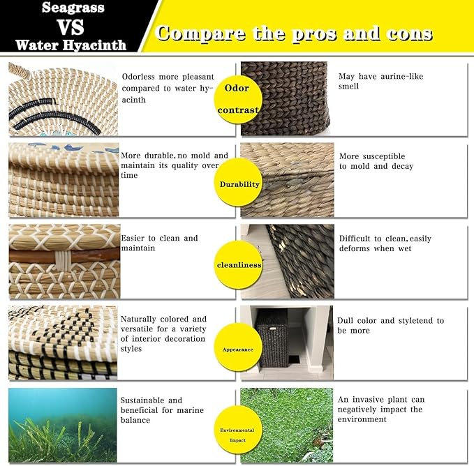 - 【Natural Material & Removable Liners】We carefully select the finest seagrass materials for crafting our exceptional 3-pack laundry hampers. The natural handwoven blankets storage with sturdy lids provide the perfect accent to any room in the house with a tight weave, durable construction, exquisite and impeccable quality. The removable liner is machine-washable for good hygiene. And the liner comes with with lids and handle on the sides, which makes it easy to carry to wherever you need.