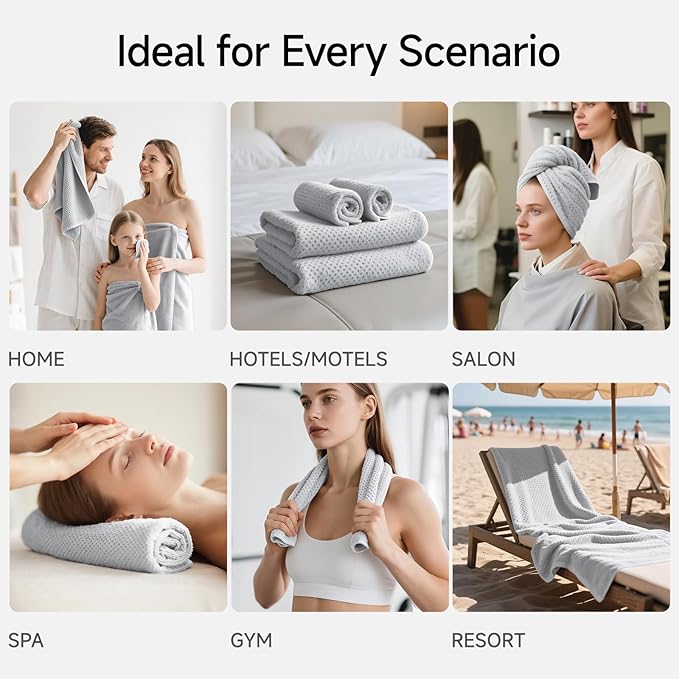 - 【Multi-Scene Versatility】 From gym sessions to beach days, hotel-style bathrooms to facial care rituals, these lightweight yet absorbent towels adapt to every lifestyle need.