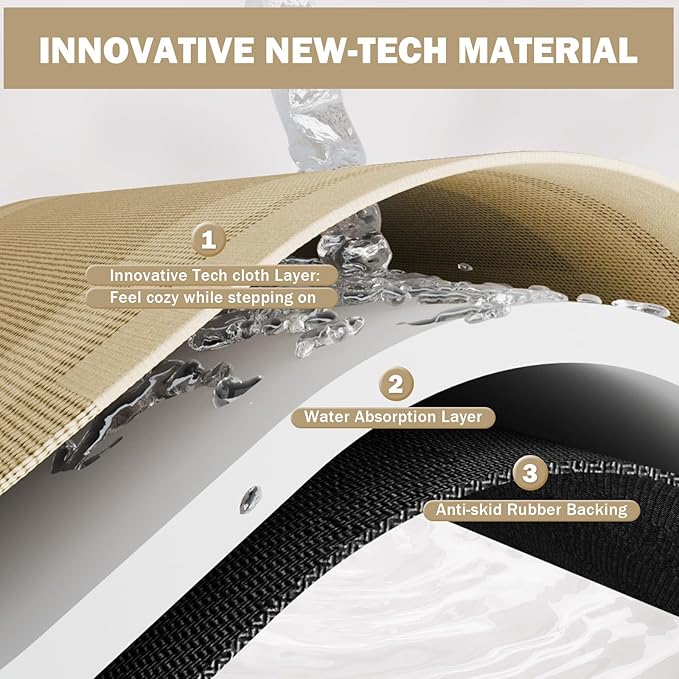- Super Absorbent & Quick Dry: Super absorbent and quick drying diatomaceous earth bath mat's surface of technological fabric fabric and nano porous absorbent layer can instantly absorb dripping water, while the nano porous absorbent layer allows water to evaporate quickly and fast drying in the natural air, without leaving obvious watermarks or stains, the watermarks will be magically disappeared in a few minutes.