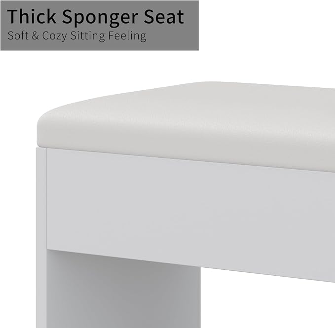 - Comfortable Makeup Stool: Included with the makeup table is a stylish makeup stool, designed with premium flame-retardant sponge and fabric for ultimate comfort. Its ergonomic shape and ideal height ensure a pleasant makeup application experience, and the stool can be conveniently tucked under the table when not in use to save space