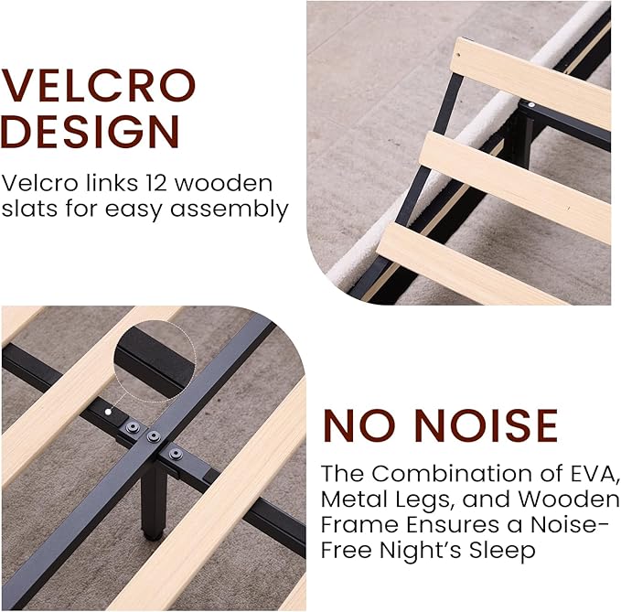 - Designed for Comfort & Safety: The queen bed frame rquipped with noise-reducing foam strips and rounded corners, this bed frame ensures a peaceful sleep and added safety—no more bumps or creaks.